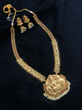 Beautiful Premium quality gold look imitation bead work ruby green stone with, Lakshmi pendant Haram comes woth lakshmi jhumka