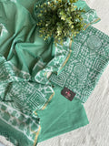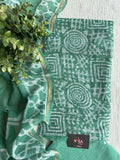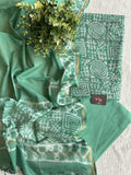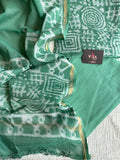 This set includes a top, bottom, and dupatta, all made with soft kota and cotton materials featuring elegant prints.