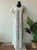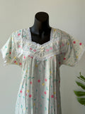 Light Yellow Poly Cotton Embroidery half sleeve full length nighty