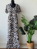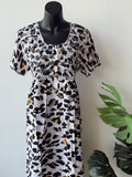 Smocking Flat front Premium quality printed Rayon full length, half sleeve nighty with front open buttons