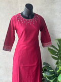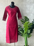 Dark pink mirror emb cotton Kurti