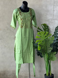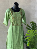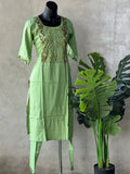 Neck embroidery 3/4 sleeve soft cotton Kurti and embroidery work elastic waist cotton pant