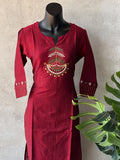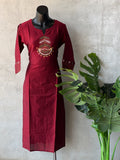 Neck patch emb work 3/4th sleeves , slub silk kurti