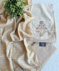 Neck patch work chanderi top, plain cotton bottom comes with zari weaving chanderi dupatta