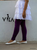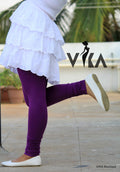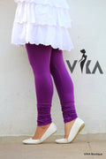 A pair of Purple knitted churidar legging, has an elasticated waistband