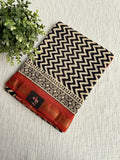 Pure Chanderi saree comes with golden zari maheswari border with printed pallu and running blouse pc