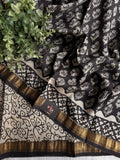Pure Chanderi saree comes with golden zari maheswari border with printed pallu and running blouse pc
