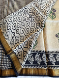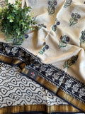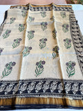 Pure Chanderi saree comes with golden zari maheswari border with printed pallu and running blouse pc