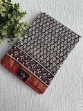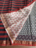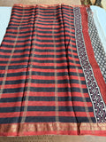 Ajrakh printed Pure Chanderi saree comes with golden zari maheswari border with printed pallu and running blouse pc