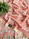 Pure Chanderi saree comes with golden zari maheswari border with printed pallu and running blouse pc