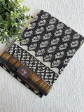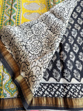 Hand Block Printed Pure Chanderi saree comes with golden zari maheswari border with printed pallu and running blouse pc