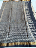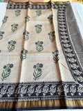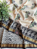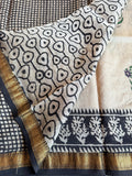 Hand Block Printed Pure Chanderi saree comes with golden zari maheswari border with printed pallu and running blouse pc