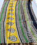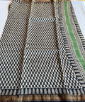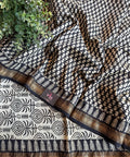 Hand Block Printed Pure Chanderi saree comes with golden zari maheswari border with printed pallu and running blouse pc