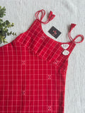 Red Checked Jamdani cotton kids frock