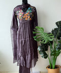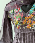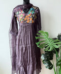 Hand emb mul chanderi Ready suit, plain silk cotton bottom comes with soft mul chanderi dupatta