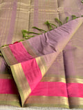 Upgrade your saree game with our Bhutta weaving Chettinad cotton saree. Featuring a rich pallu and a plain blouse piece, this saree effortlessly combines tradition and elegance. Handwoven with precision, it's perfect for any occasion.