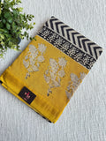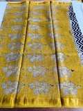 Hand Block Printed Pure Chanderi saree comes with golden zari maheswari border with printed pallu and running blouse pc