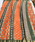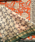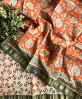 Pure Chanderi saree comes with golden zari maheswari border with printed pallu and running blouse pc