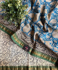 Pure Chanderi saree comes with golden zari maheswari border with printed pallu and running blouse pc