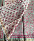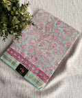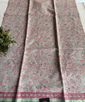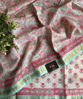 Pure Chanderi saree comes with golden zari maheswari border with printed pallu and running blouse pc