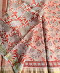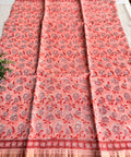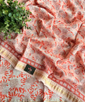 Pure Chanderi saree comes with golden zari maheswari border with printed pallu and running blouse pc