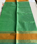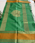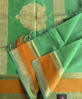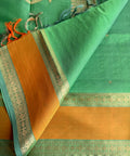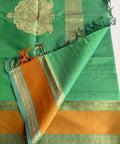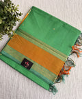 Expertly crafted from pure handloom silk cotton, this saree showcases a rich weaving pallu and comes with a matching blouse piece. Enjoy the luxurious feel of silk with the comfort of cotton, making this saree perfect for any occasion. Elevate your style and make a statement with this elegant saree.