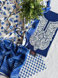 Lucknowi neck work pure cotton top, printed cotton bottom comes with printed soft cotton dupatta