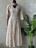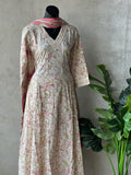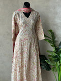 V neck anarkali pattern printed pure cotton kurti, elastic waist plain cotton pant comes with printed soft cotton dupatta