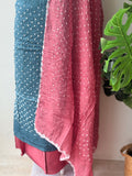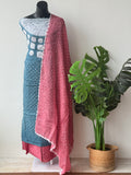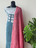 Bhandej hand dyed pure cotton top, printed cotton bottom comes with cotton dupatta