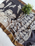 Make a bold statement with this Kalamkari printed Bangalore silk dupatta, where tradition meets fearless style. Crafted from rich Bangalore silk, it features striking hand-drawn Kalamkari patterns that command attention and celebrate artistic rebellion. The vibrant colors and intricate designs explode with energy, transforming any outfit into a masterpiece of daring elegance. Lightweight yet luxuriously smooth, this dupatta drapes effortlessly, adding a fearless pop of culture and sophistication to your look. Stand out from the crowd and redefine classic fashion with this unapologetically bold accessory.