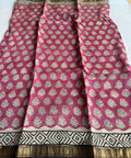 Pure Chanderi saree comes with golden zari maheswari border with printed pallu and running blouse pc