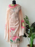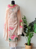 pichwai Printed pure linen cotton top, plain cotton bottom comes with printed linen cotton dupatta