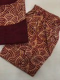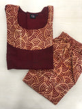 Plain maroon with batik patch 3/4th sleeves cotton top comes with Batik printed elastic waist ready pant