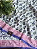 Printed soft mul cotton saree with printed pallu and printed blouse pc