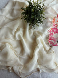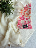 Printed muslin silk top, cotton silk bottom comes with scallop border sequins work organza dupatta