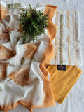 Tie and dye cotton linen top, plain santoon bottom comes with printed sequins work dupatta