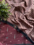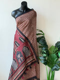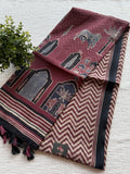 Zigzag Printed linen cotton saree comes with ajrakh style printed blouse and printed pallu